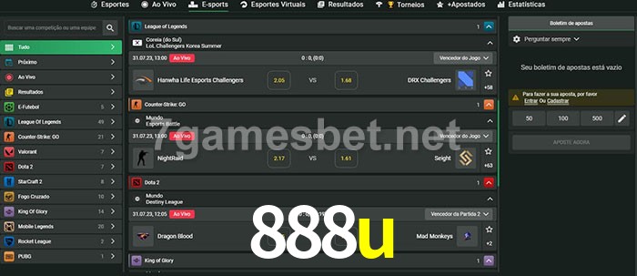 A aposta 888u oferece aos jogadores a experiência mais conveniente de apostas em eSports!